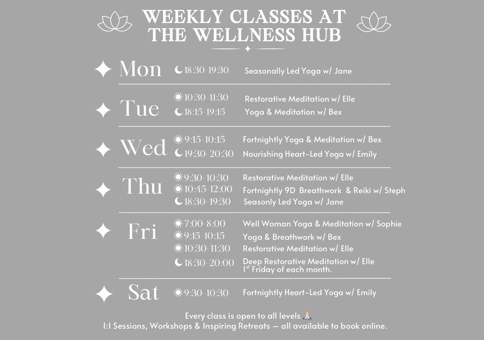 Discover upcoming events and workshops, along with our monthly themes designed to support your wellbeing and spiritual journey.Your path to wellness starts here!